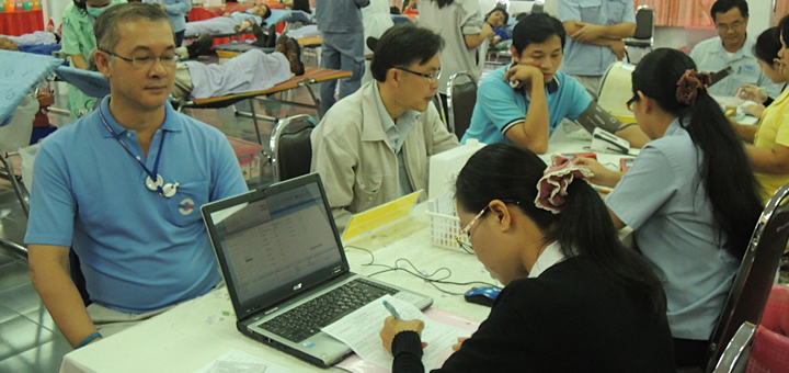 Blood donors from POSCO-Thainox together with other alliances in Rayong Industrial Park (RIP) joined ‘Give Blood for Lives’ to the Thai Red Cross Association, the 1 st session hold on January 29, 2013 at Thai Film Industries (TFI), Rayong province, to commemorate H.M.the King and the Queen.