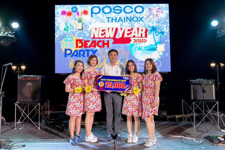โพสโค-ไทยน๊อคซ์ ได้จัดงานเลี้ยงสังสรรค์ปีใหม่สำหรับปี 2562 ขึ้นในวันศุกร์ที่ 21 ธันวาคม 2561 ภายใต้ธีม “On the Beach” ณ ห้องอาหารสิริณพลา ริมชายหาดพลา บ้านฉาง พนักงานได้เข้าร่วมงานอย่างคับคั่งพร้อมแต่งกายหลากสีสัน ซึ่งปีนี้มีรางวัลให้ลุ้นถึง 140 รางวัล รางวัลใหญ่สุดเป็นสร้อยคอทองคำหนักถึง 2 บาท และยังมีการแสดงและการประกวดให้ร่วมสนุกกันมากมาย การแสดงของพนักงานจากทั้ง 4 ฝ่ายในปีนี้ยังคงอลังการและสนุกสนานเหมือนเช่นเคย โดยฝ่ายผลิตเป็นผู้ครองใจกรรมการได้อันดับที่ 1 ไปครอง รับเงินรางวัลถึง 30,000 บาท ที่ 2 เป็นของฝ่ายสนับสนุนบริหารสำนักงาน ได้รับ 25,000 บาท ที่ 3 เป็นของฝ่ายการตลาดรับ 20,000 บาท และ รางวัลที่ 4 เป็นของทีเอสพีซีรับ 15,000 บาท และมาถึงการประกวดชุดแต่งกายยอดเยี่ยมภายใต้ธีมชายทะเล ทั้งประเภทชายและประเภทหญิงผู้ที่ได้รับรางวัลคือ คุณมินชอล โช (ชุดพระอภัยมณี) และ คุณวาสนา ทองคำ (ชุดนางเงือก) รับเงินรางวัลท่านละ 2,000 บาท ช่วงท้ายของงานมีการจับรางวัลใหญ่ซึ่งทุกคนรอลุ้นกัน โดยรางวัลที่ 1 ทองคำหนัก 2 บาทเป็นของ คุณอดิศักดิ์ ไชยแสน จากทีเอสพีซี งานในครั้งนี้เต็มไปด้วยความสนุกสนาน รอยยิ้ม ของพนักงานและผู้บริหารทุกท่านภายในงาน นับว่าเป็นงานเฉลิมฉลองที่ยิ่งใหญ่ของพนักงานทุกคน