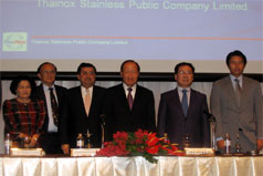 Thainox AGM 2011: Thainox revealed 2010 operational performance, gained net profit of 643 MB increased from previous yr 2009 amounted 237 MB, dividend approved for shareholders totaled 156 MB, Meanwhile, Thainox management ensure shareholders’s confidence towards brighter future of stainless steel market which is being stood up due to the country‘s economic recovery, particular in the sectors of new infrastructure project, and continuing growth of domestic construction & real-estate. Prayudh Mahagitsiri, Thainox Chairman & CEO, said in the AGM 2011 that Thainox realized 10,474 MB revenue in the year 2010 from sales of cold-rolled SS, increased by 32 % compared to the year 2009, mainly was due to higher shipment volume of 19% and average selling price of 10 %., resulting to net profit gained of 643 MB, increased by 237 MB; therefore, the company has resolution to make the dividend payment amounting of 156 MB or 24 % of net profit, shall be paid to shareholders by May 12, 2011. In addition, Prayudh expressed confidence towards the trend of brighter SS market than the recession of the country’s economic and overall industry in the past couple of years. According to nickel price, a major component of stainless steel, currently becomes more stable rather than sharply fluctuated in the past few years; its price sometime went up to more than 50,000 US$ per tonne---presently, the adjusted nickel price has an average of about 25,000 US$ per tonne, resulting in Thainox efficient managing its inventory and production forecasting right to market demands. For this reason, Prayudh hopes that Thainox will be able to perform well and return benefits to shareholders as good as they‘ve got in the past---, of which the dividend paid more than 2,500 MB to shareholders. Photo caption: BoDs of Thainox Stainless PCL from let to right, M.R. Priyangsri Wattanakun, Mr. Sornthep Gomutbuth, Mr. Jitender P. Verma, Acting M.D. & CFO, Mr. Prayudh Mahagitsiri, Chairman& CEO, Mr. Young-Sea Suh, and Mr. Chalermchai Mahagitsiri, Vice Chairman.