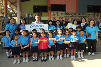 On 10th of January 2014, the representative of POSCO-Thainox employees visited the 6 communities nearby its Rayong Plant to donate the school stationary to support the 2014 National Children Day. The visited communities were Mabkha Pattana Municipality, Nikhom Pattana Police station, Mabkha Nursery, Mabkha School, Nikhom Sang Ton Eang 2, 3 and 5 respectively. POSCO-Thianox has continuously engaged in this activity on Children day since the start of its operation in Rayong.