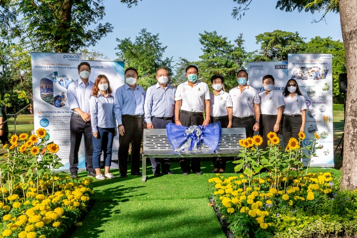 On 2nd December 2020, the ceremony to install new stainless steel benches for public use was held at Vachirabenjatas Park. The 50 benches are donated by POSCO-Thainox Public Company Limited in line with its "Corporate Citizenship" project initiative. On the occasion, the honorable Police General Asawin Kwanmuang, Governor of Bangkok as an assignee of Bangkok Metropolitan Administration has presented himself and received the project delivery. POSCO-Thainox had initiated a series of projects, in collaboration with local fabricators as well as target groups of receivers, to apply stainless steel furniture to refurbish the old facilities to ensure the public to enjoy more pleasant environments. Main focus areas this year are park bench refreshment and school canteen makeover.