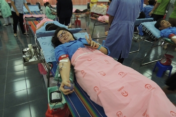Blood donors from POSCO-Thainox together with other donors from the alliances in Rayong Industrial Park joined ‘Give Blood for Lives’, the 1 st session / 2014, on January 21, 2014, at Thai Film Industries (TFI) office.