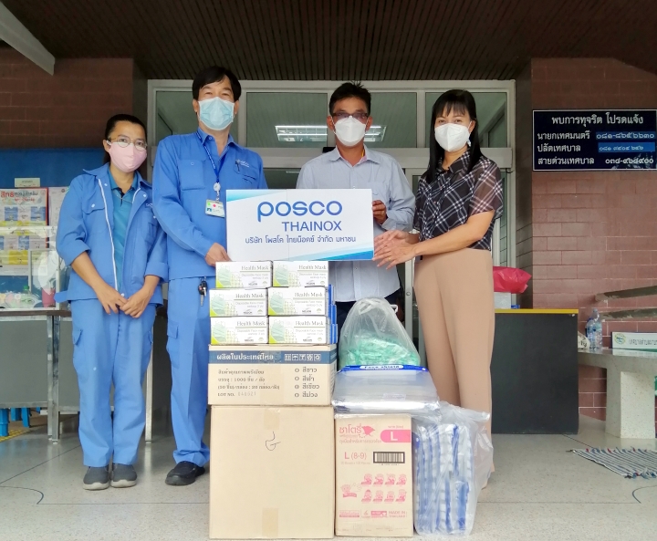 It has been found that there are many new cases and deaths as a result of the COVID-19 virus epidemic in Rayong Province and more cases were discovered in a variety of locations. To help monitoring, preventing and controlling the COVIDE-19, POSCO-Thainox Public Company has provided personal protection equipment to Map Kha Phatthana Subdistrict Municipality Office in Nikhom Phatthana District, Rayong Province for officials and relevant personnel as follows: