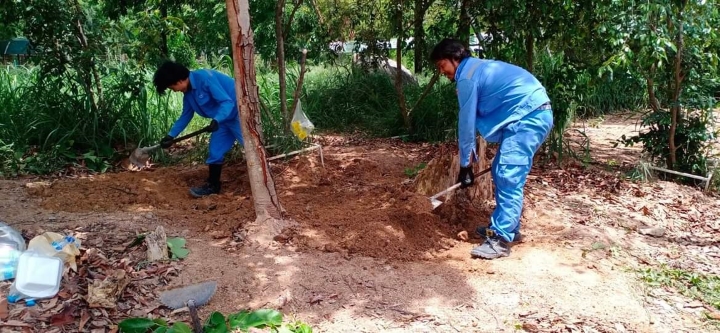 On 28 -29 May 2024, Posco-Thainox improved the landscape of the sign at Nikhom Phatthana District Office. Adjust the area and install artificial grass.