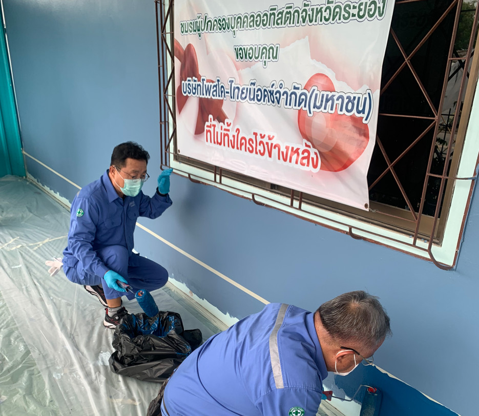 On June 11–12, 2024, Posco-Thainox painted the exterior and interior of the building and repaired the walls, and repainted the room for the autistic children group. Autism Parents Club, Rayong Province