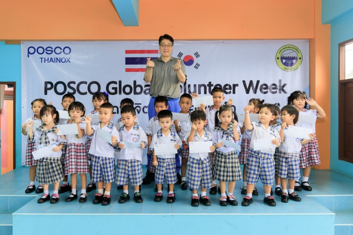 "POSCO-Thainox donated computers and awarded scholarships to young children on the occasion of POSCO Volunteer Week at Mabkha Pattana Kindergarten School on May 30, 2025.