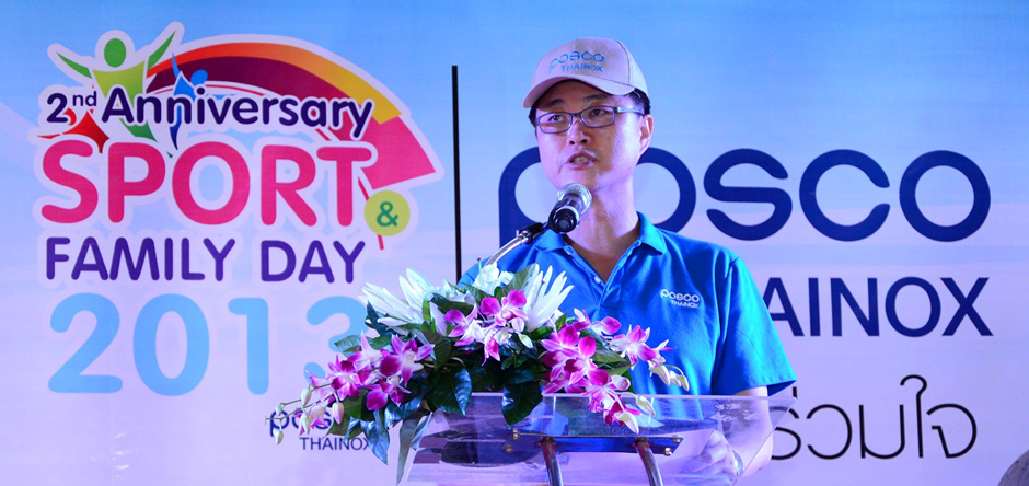 The welfare Committee of POSCO-Thainox held 2013 Sports & Family Day together with celebration of its 2nd anniversary of creating another success story. The event held at the IRPC sports complex, Rayong province, on Saturday, September 07, 2013, from 9:30-15:30 hrs. The sports day and the celebration aimed to promote employees and families for having fun lives, being strong health and bringing happiness as well as success to their families and the corporate in turn. The competition comprised of parade and cheering teams between Green and Brown, the final round of football, ping-pong, chair ball between management males and employee females, team building games, ending up with lucky draws, presents and many more.