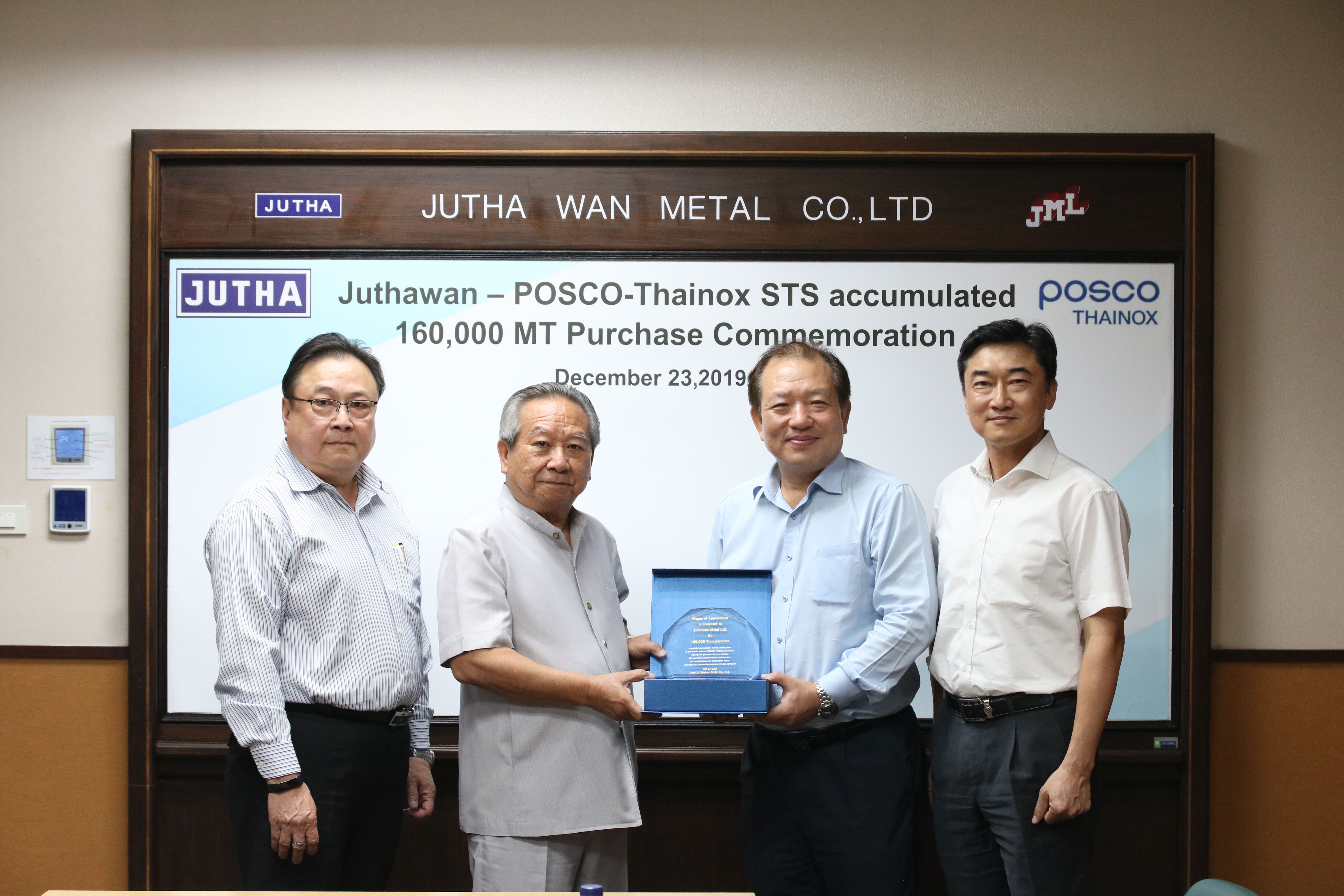 เมื่อวันที่ 23 ธันวาคม 2562 คุณยองชอล ควอนและคุณคยอง จิน ลี ได้ร่วมแสดงความยินดีและมอบโล่ห์ประกาศเกียรติคุณให้แก่ผู้บริหารจากบริษัทจุฑาวรรณเนื่องในโอกาสที่มียอดสั่งซื้อสะสมครบ 160,000 ตัน